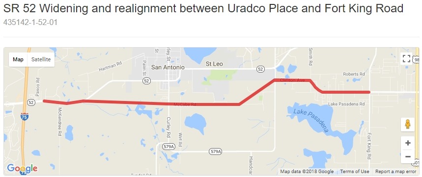 Clinton Avenue between Pasadena Avenue and US 301 will also become the new SR 52. The section of existing SR 52 between Bayou Branch Canal and US 301 will be designated CR 52 after the construction of the new SR 52 is complete.